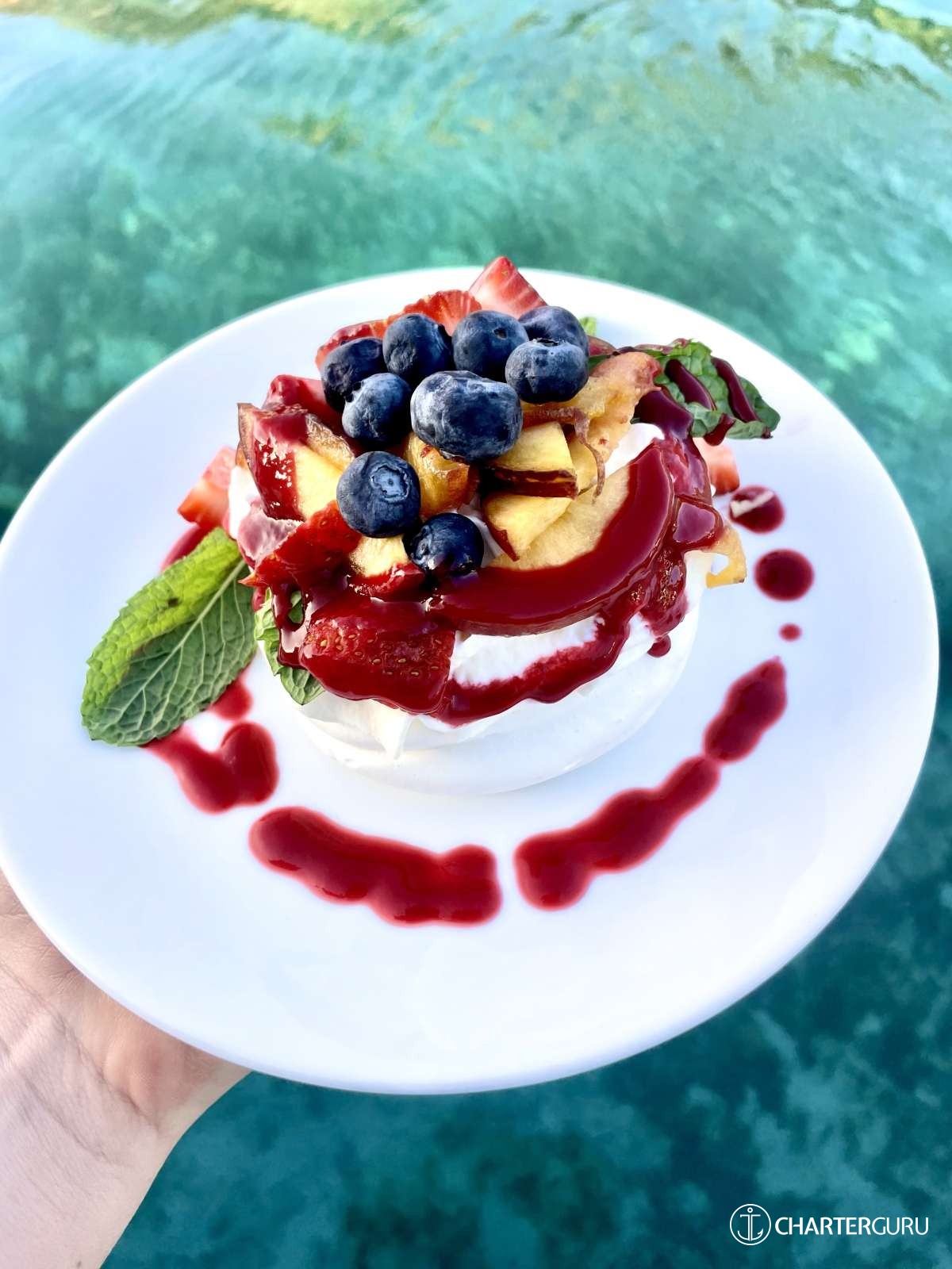 Chartering with Marine Max on a crewed 545 boat for a week was the ultimate vacation. Everything was taken care of from the minute we stepped on board until we were dragged off at the end. Captain Guy was quite thoughtful about each day's adventures and Caz, our amazing chef, created fabulous culinary treats that had us anticipating every meal even when we weren't hungry. The boat was clean, well .....