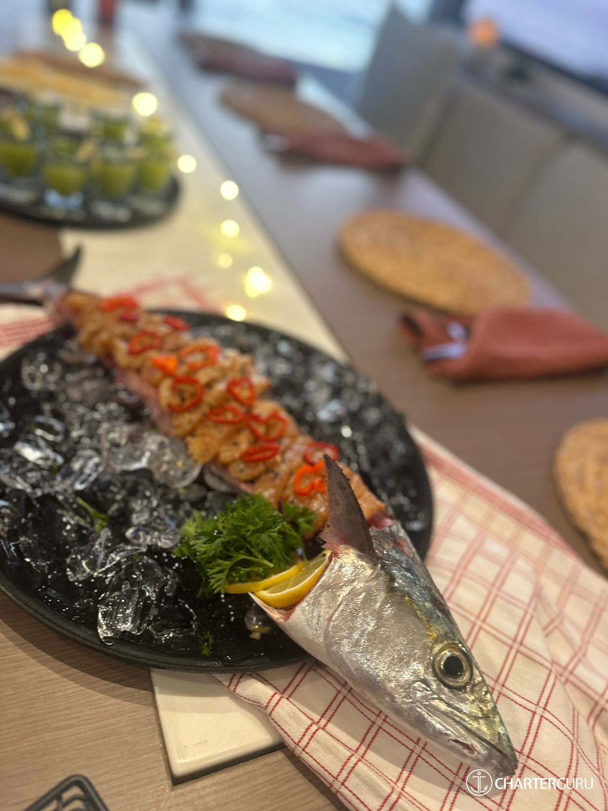 clean, spacious and had an upper deck area that was perfect for playing games, sunbathing, and watching sunsets. I am not exaggerating when I say that the food was some of the best I have EVER had in my life – sushi buffet, fresh fish, pasta, and more! The crew were top notch – they were fun, laid back and provided everything that we needed. We would go back in a second! Book now!