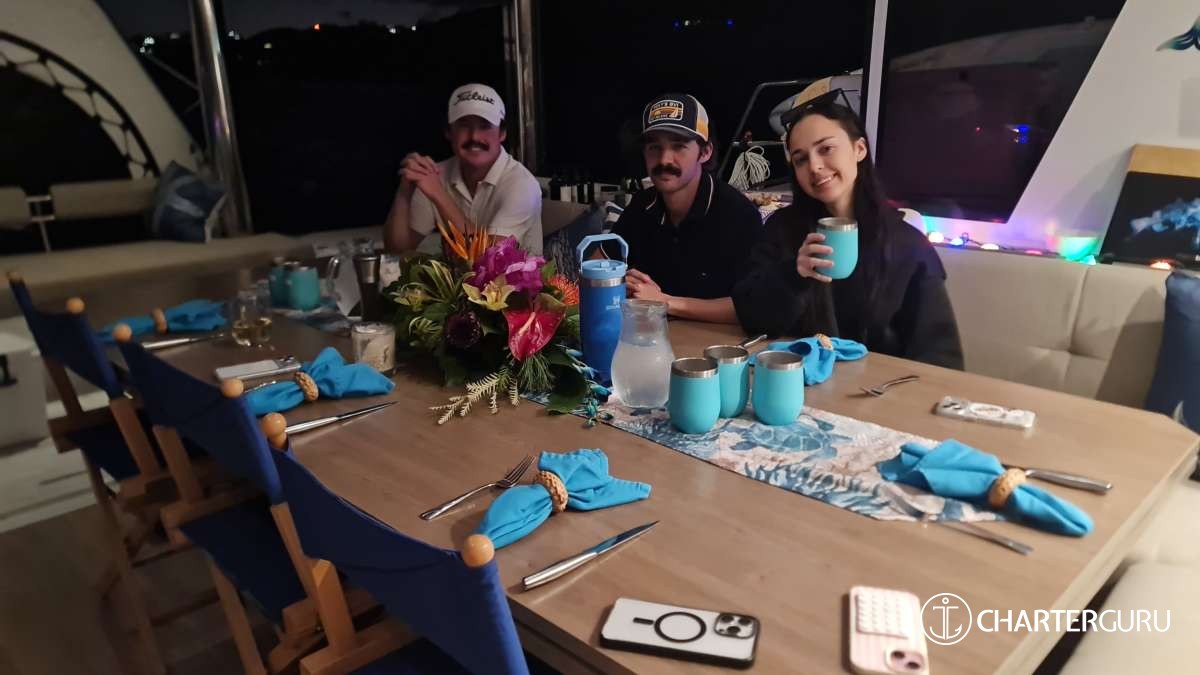 Enjoy a relaxed evening onboard before your charter begins.