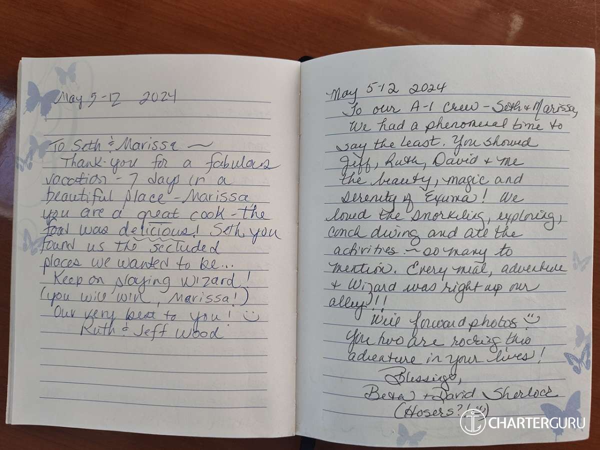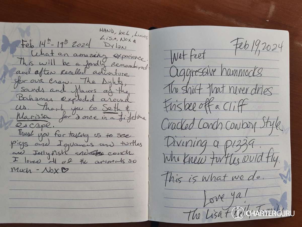 You were both so kind with the children and gracious in your hospitality. And although I understand provisioning is difficult in the Exumas (and you didn’t have much notice for our trip) every meal was delicious and the menu was well planned. The beach bonfire on the last night topped it all off - the kids have not stopped talking about the ‘Smores’ - what a lovely finish to the trip.