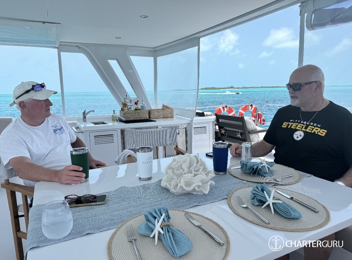 Thank you for a spectacular week of adventure visiting the Abaco Islands. The icing on the cake was being aboard Earnout (a gorgeous catamaran!) and having you two as our hosts! You both do a fabulous job of making us feel welcome and comfortable. Plus, every meal was a dining experience beyond our wildest dreams. A Michelin quality restaurant all the way!