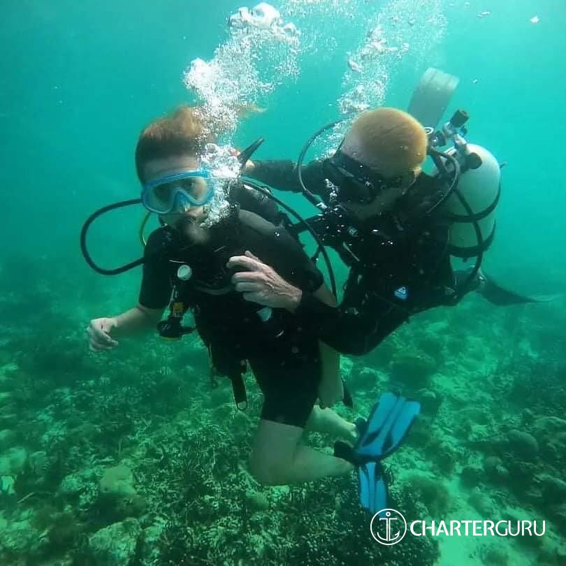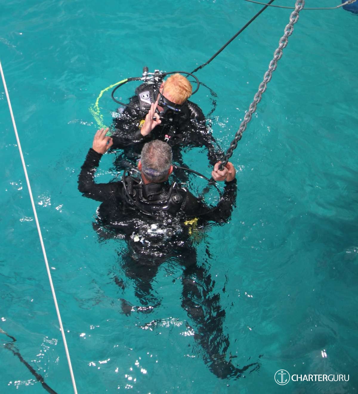 Diving in the Marine Park at Tobago Cays is at extra cost to the Charter Guest as only Local Dive Operators can dive there. $160 for a double dive.