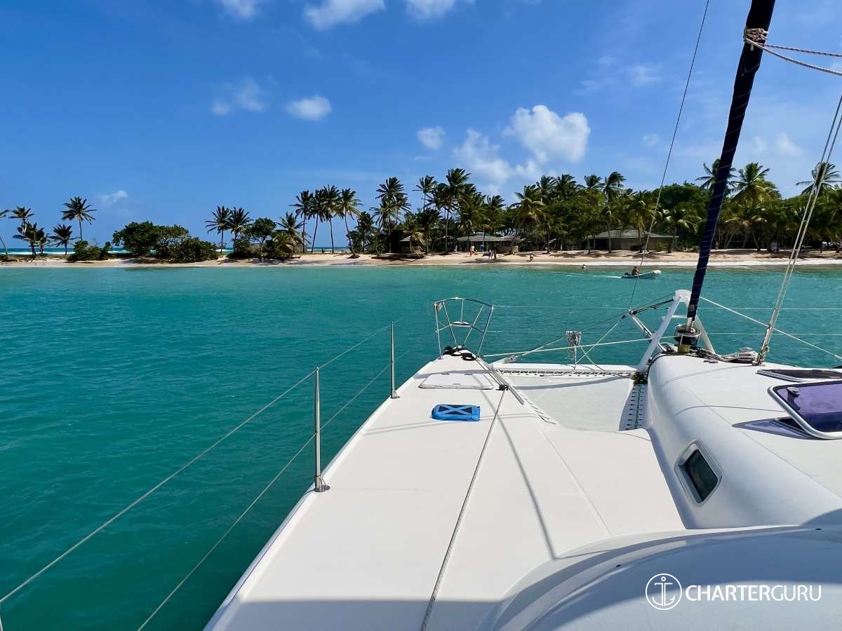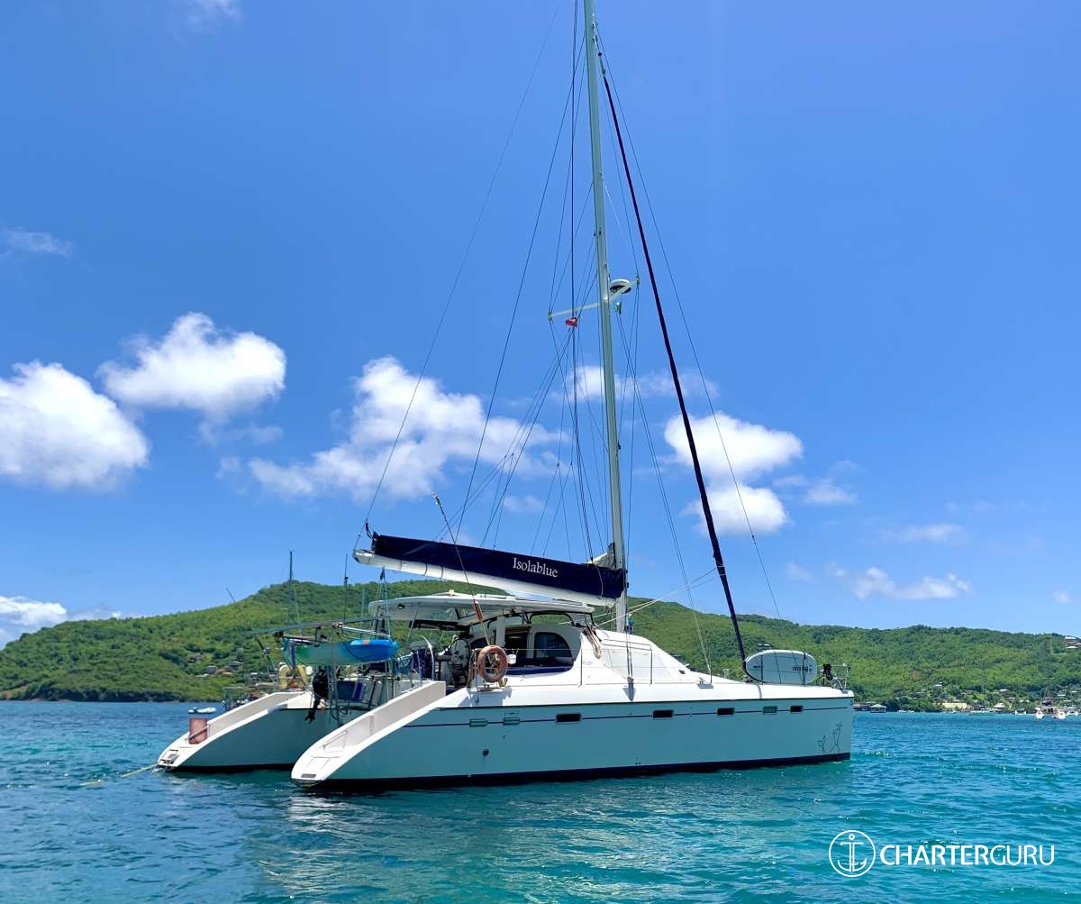 Represented by DMA Yachting, the breathtaking charter yacht ISOLABLUE is a 49 ft sailing catamaran. The most attractive features of ISOLABLUE are her generous space and interconnection with the sea. ISOLABLUE spends the season in the Caribbean. She was constructed by the ship builder PRIVILEGE ALLIAURA MARINE GROUP in 2001. An elegant refit was finalized in 2016/7/8 (new steering seat, additional solar panels, full A/C installation, shower column for starboard cabin). The ingenious yacht layout features 3 cozy cabins and easily accommodates a maximum of 6 guests.