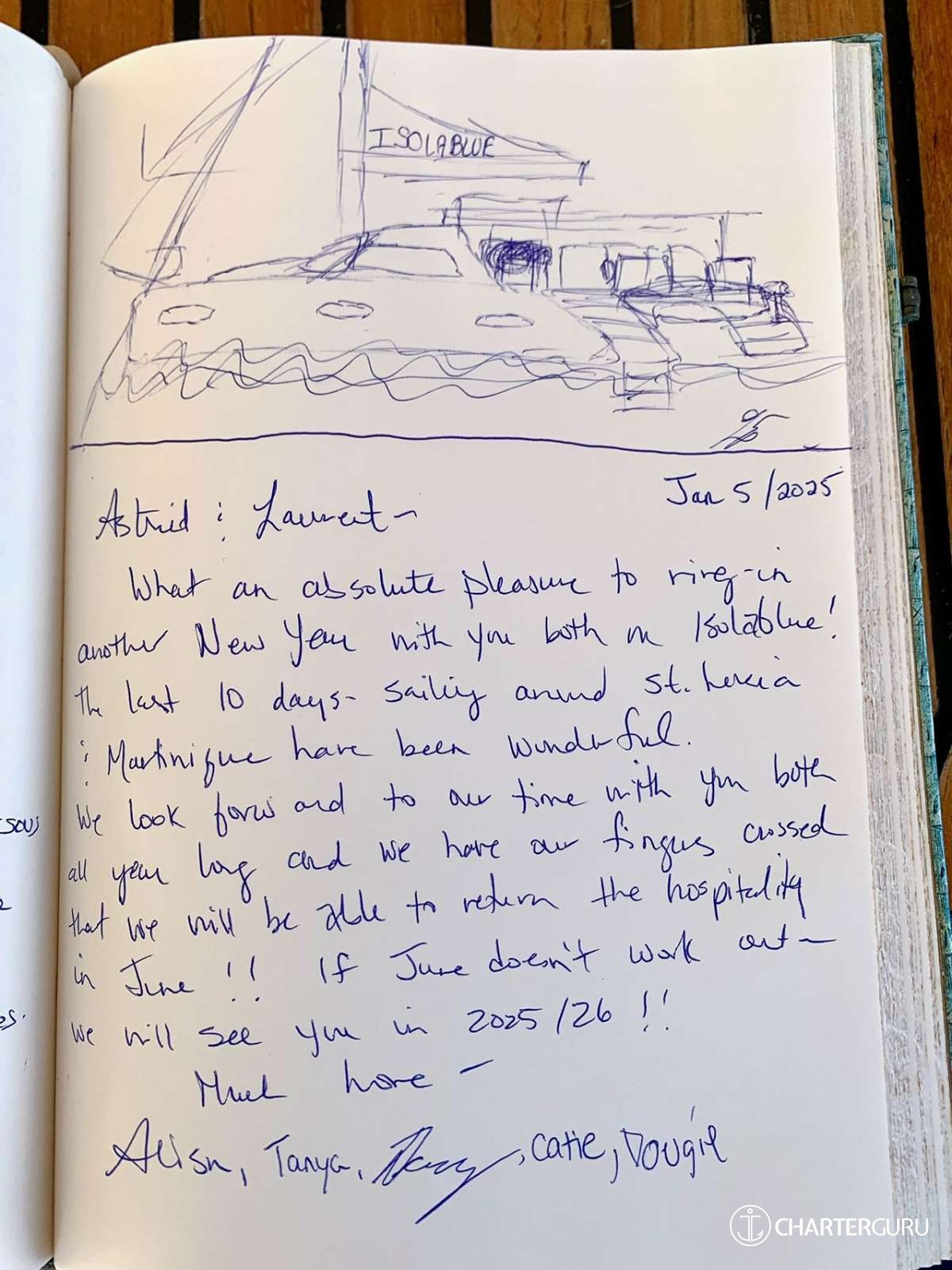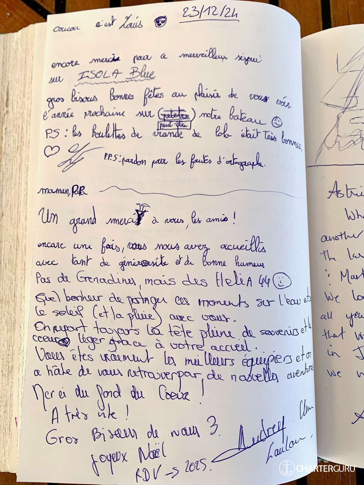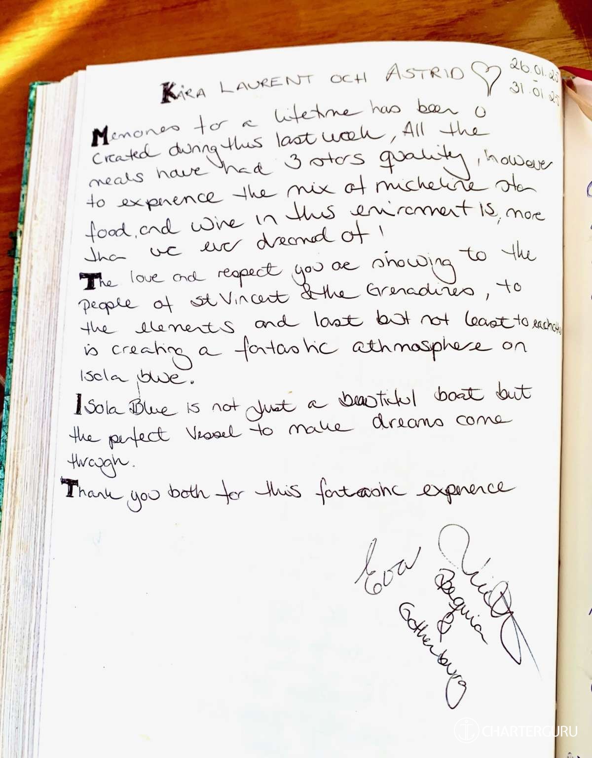 You have made it very easy for us to enjoy two happy weeks on your Isolablue. We are very grateful for your hospitality, your unavoidable commitment and your warmth. With that you have touched us deeply and opened our hearts. We wish you always a handful of water under the keels and look forward to seeing you again.