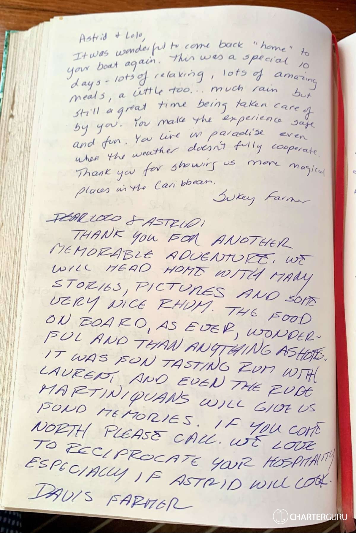 3 days between Tobago Cays and Union. It was great to be able to discover your passion and your universe. Jo summarized our trip with you already. So I write you a few words to thank you. Good food, your kindness, your good mood and moments of unforgettable sharing. One thing is certain, we will come back. And this time baby will be in our arms. A big thanks. Many kisses and see you soon under the Caribbean sun. Thank you, everything was just magic, your welcome, your kindness, the exchanges, I had the impression to know you for a long time. I hope to see you again for new adventures, in the meantime I embrace you very sincerely. Sylvianne