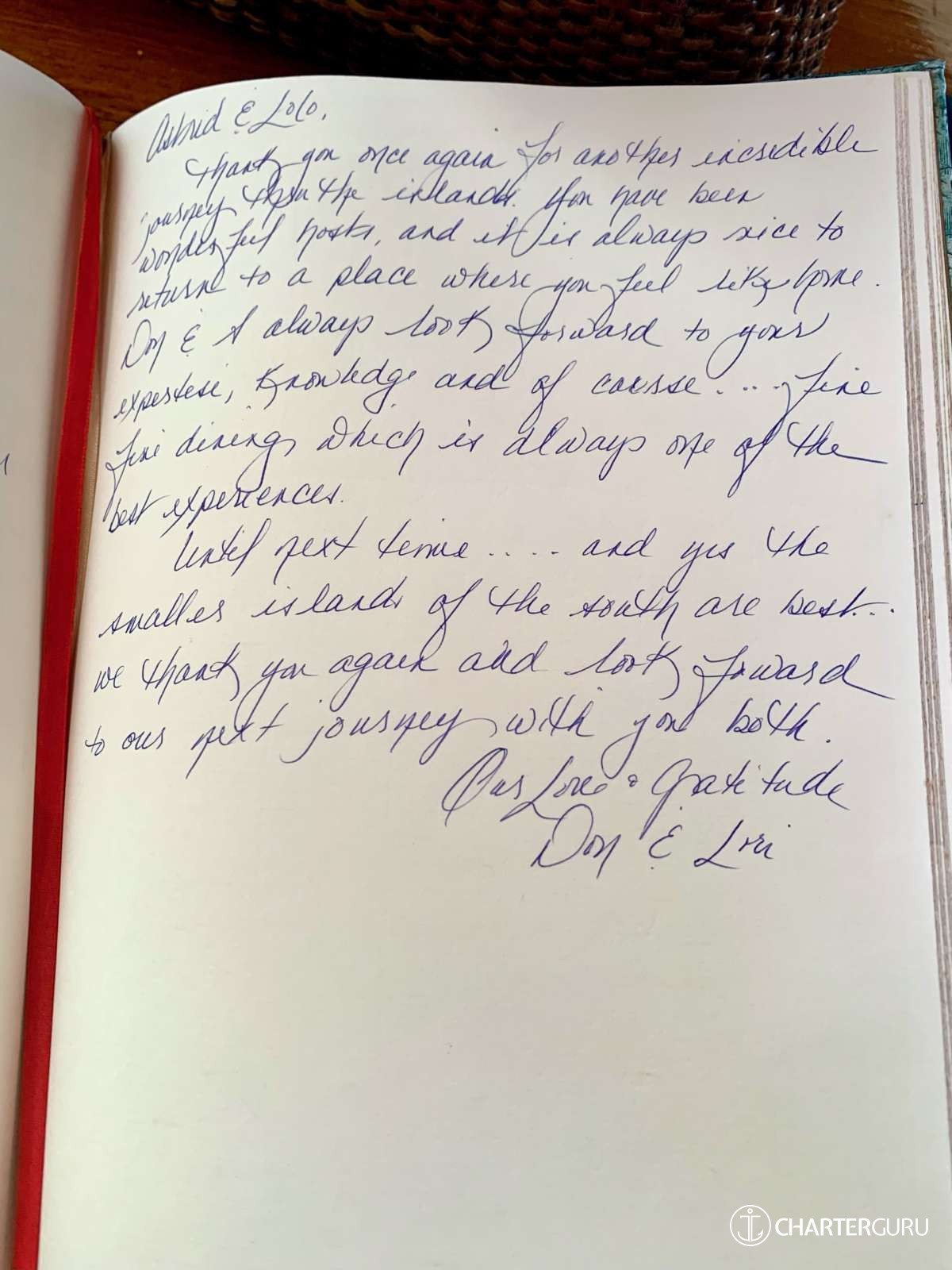Thank you both for such an amazing week. We’re not just customers, crew, or even just friends, I feel now we are family.