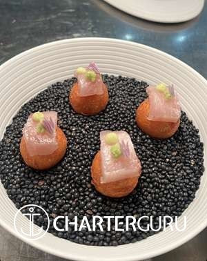 Chef Loïc Doan Jausoro brings a wealth of experience and creativity to the Lagoon Seventy8, Jan’s FeLion. At 25 years old, he has built an impressive culinary career, including training at Spain’s top culinary school and working in Michelin-starred restaurants across the globe. With two successful charter seasons aboard the previous Jan’s FeLion(Lagoon 64), Loïc has already proven his ability to deliver exceptional dining experiences