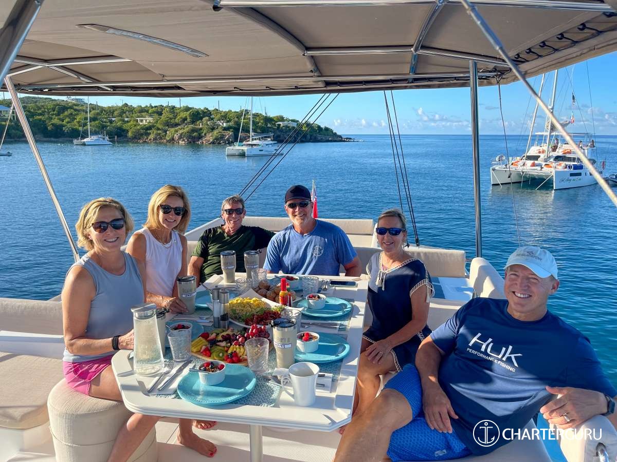 Onboard catamaran KORU in St Thomas. We have already booked her many times, so we know she is great!