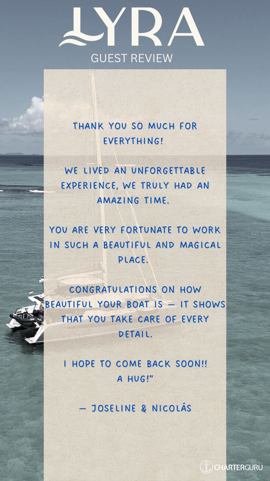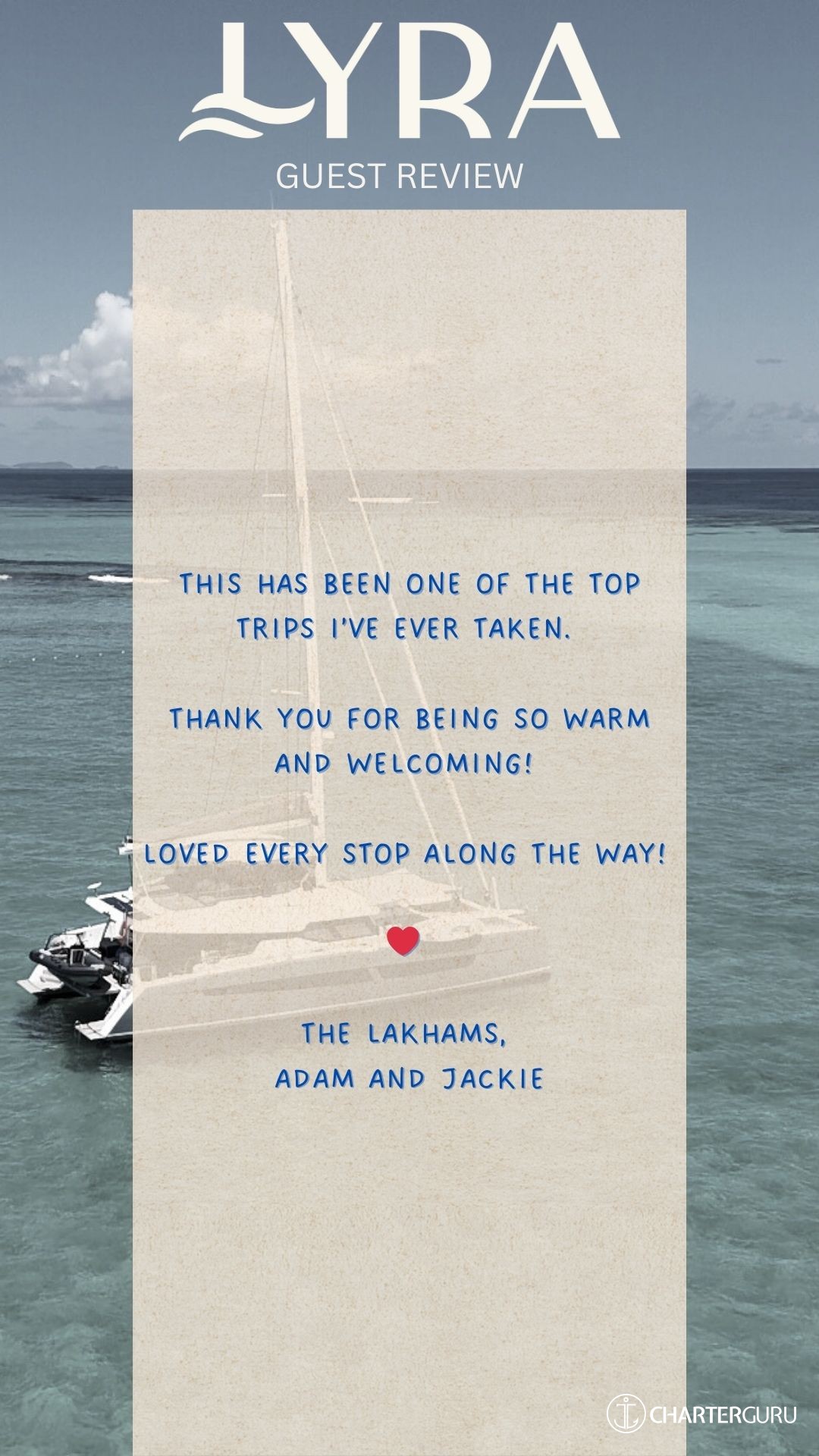 We adore the Lyra crew and we recommend her to everyone!