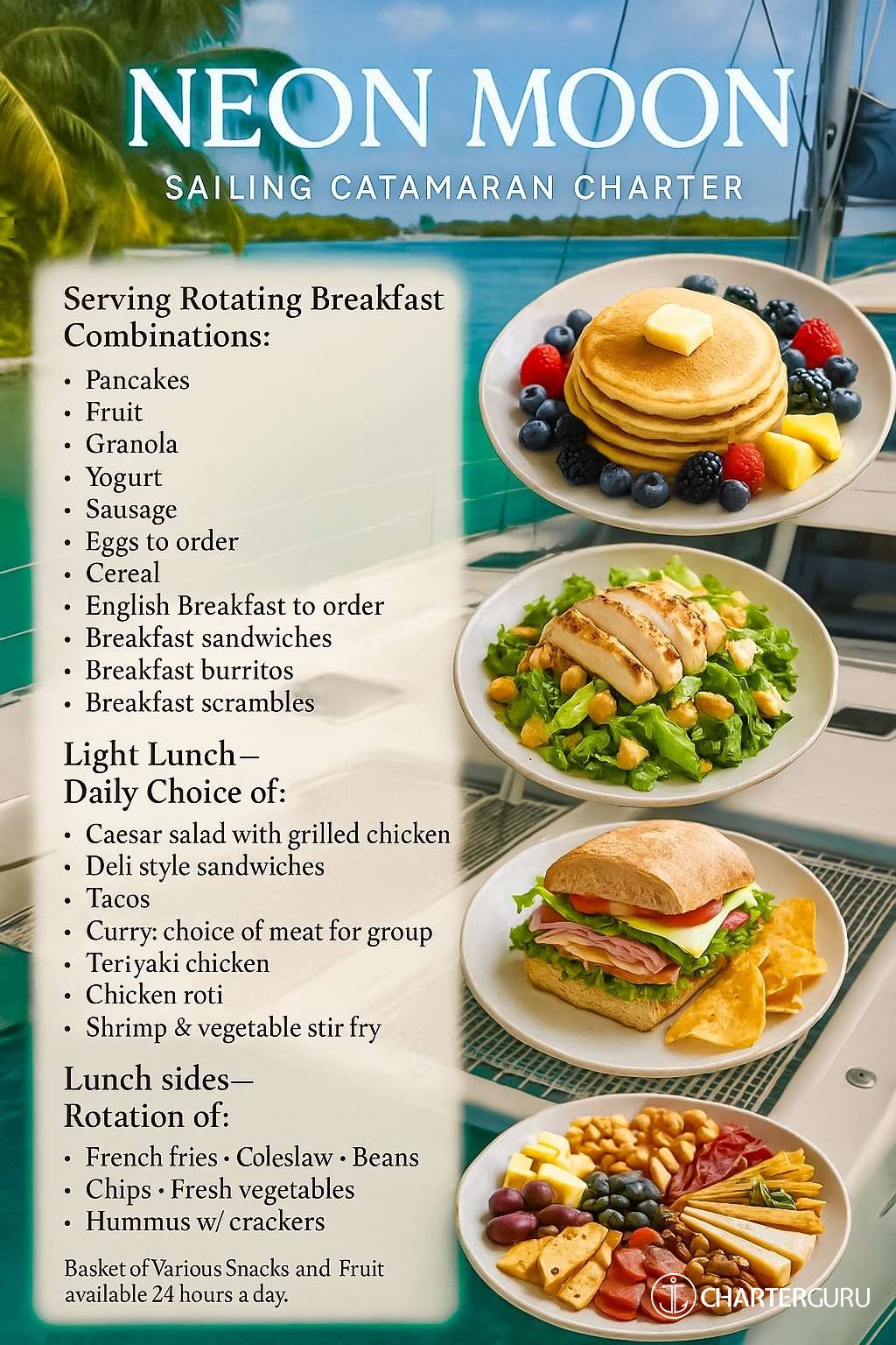 Inclusive charters are crewed charters with minimum or no additional charges. Provisioning, fuel and crew are included in the price. Additional fees may include diving, premium alcohol, local taxes, or onshore activities. These vary from yacht to yacht, please inquire.NEON MOON Yacht Charter Price