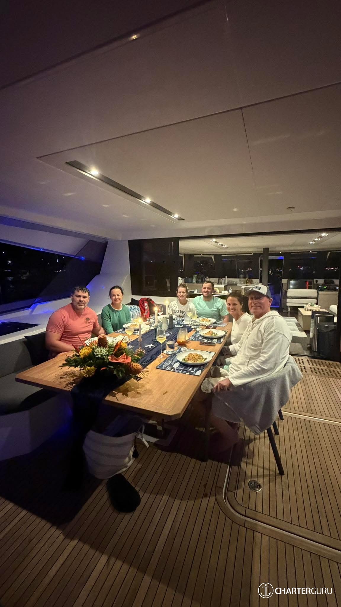 Enjoy a relaxed evening onboard before your charter begins.