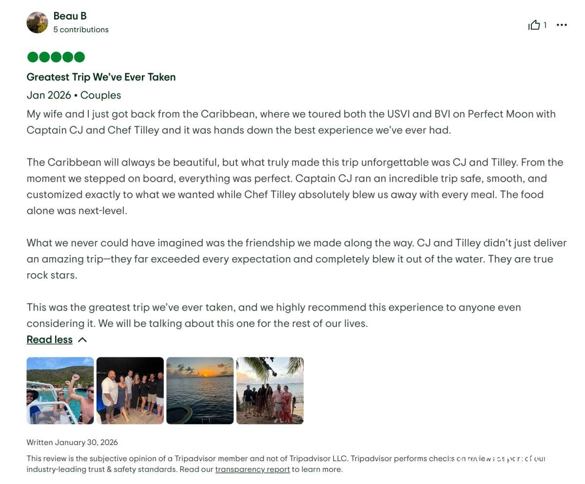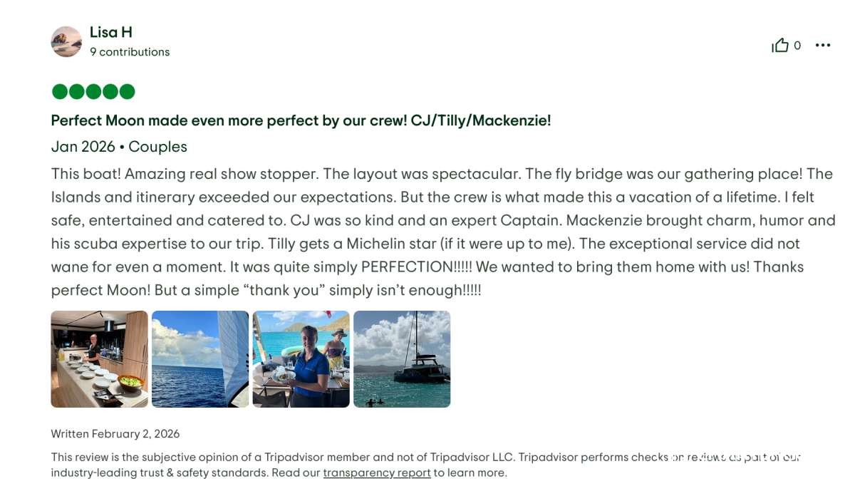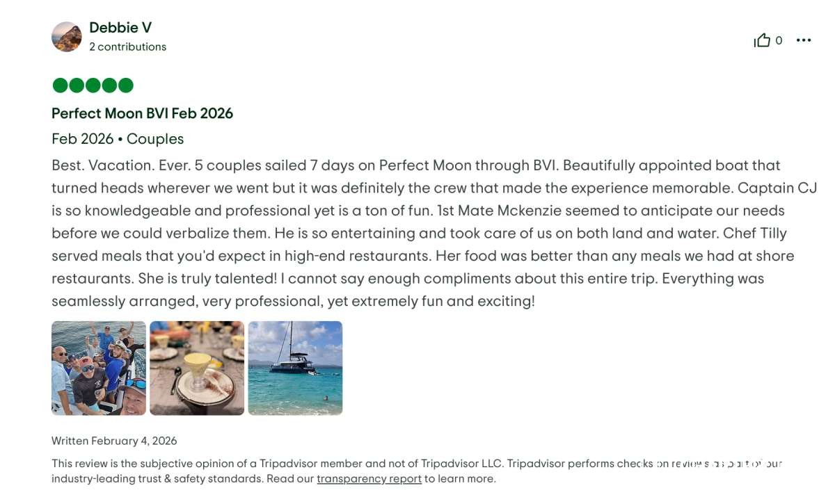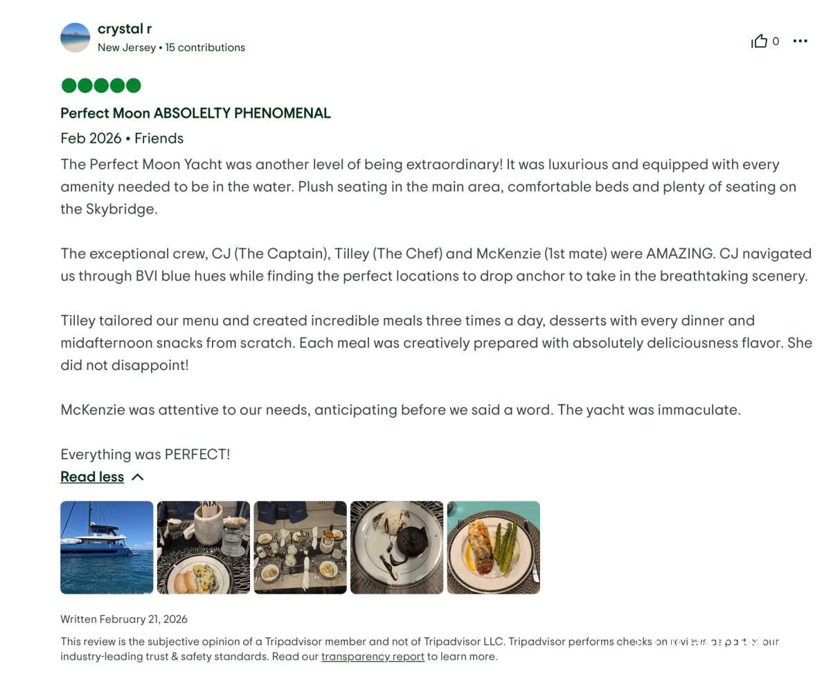 This crew delivered the ultimate #dreamweek — fun, relaxing, delicious, safe, and beyond memorable. We cannot recommend #PerfectMoon and this crew highly enough. We will be talking about this trip forever! 🌙⛵✨
