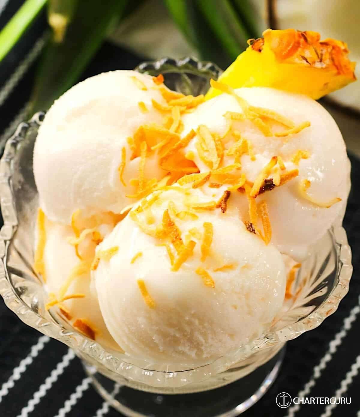 Homemade Coconut Ice Cream with Caramelized Pineapple