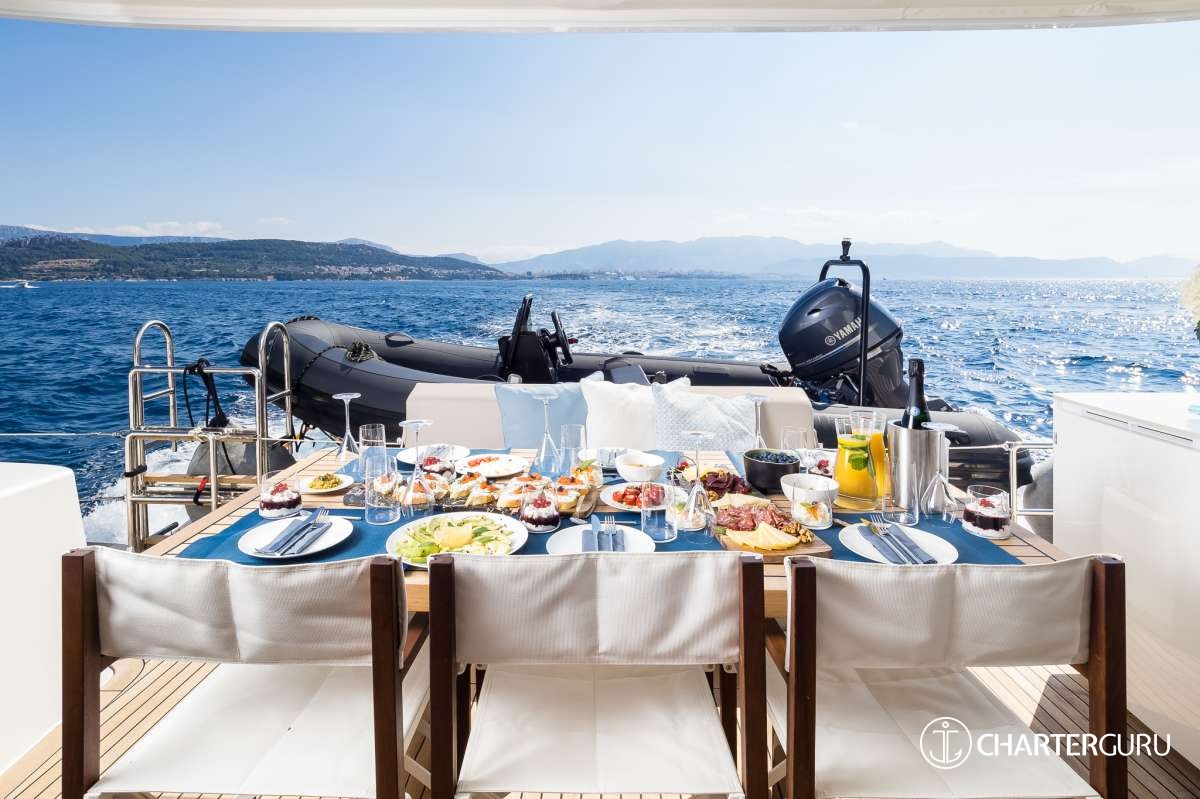 The expenses, such as provisioning, fuel, marina fees, are deducted from the APA. The APA is based on the price of the yacht and ranges from 15% (crewed sailing yachts) to 30% (motor yachts with higher fuel consumption).