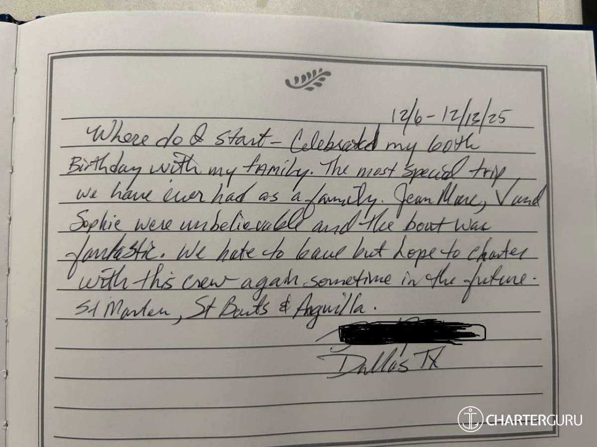 We have to leave but hope to charter with this crew again sometime in the future, St Martin, St Barths & Anguilla.