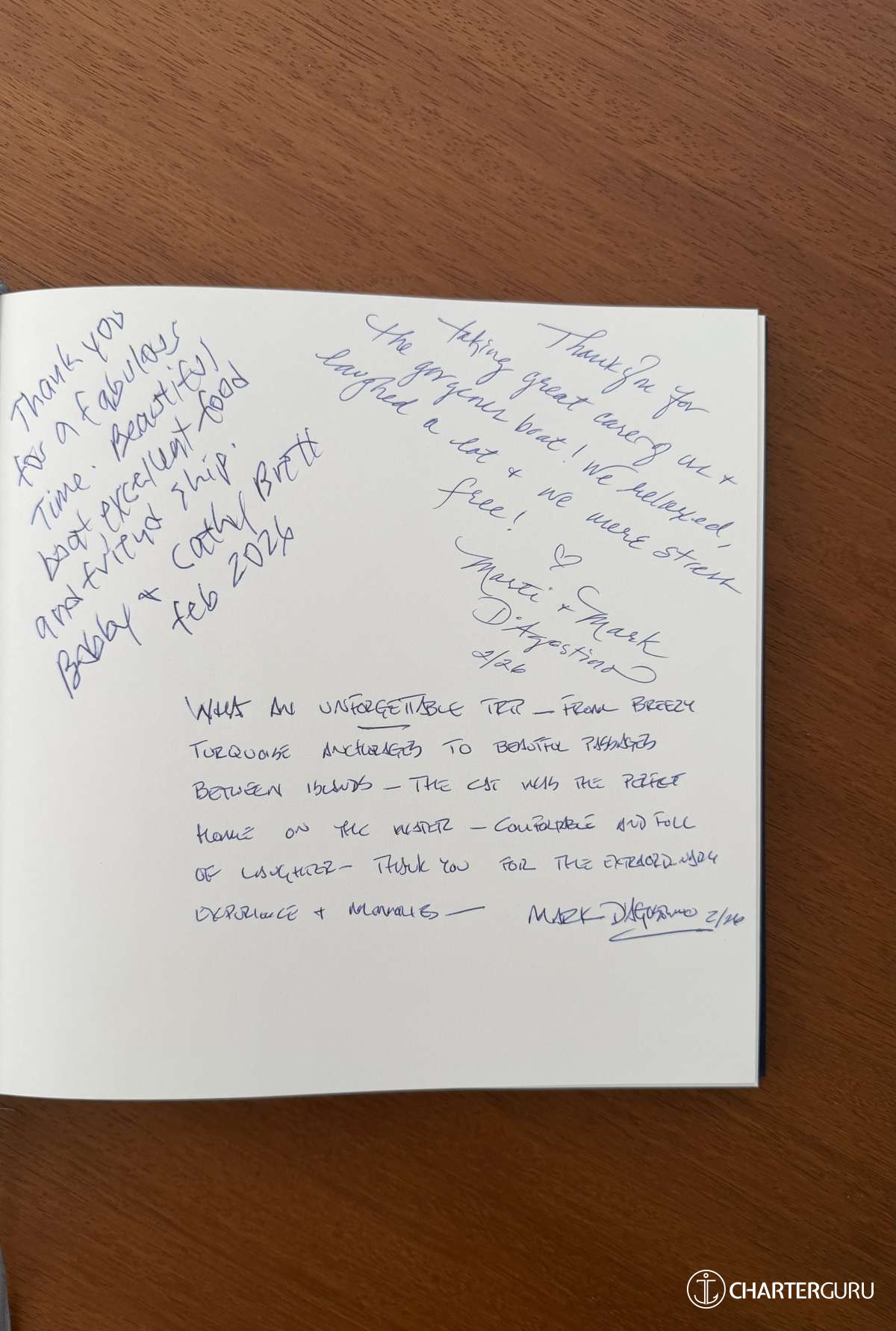 Thank you for talking great care of us + the gorgeous boat! We relaxed, laughed a lot + we were stress free!